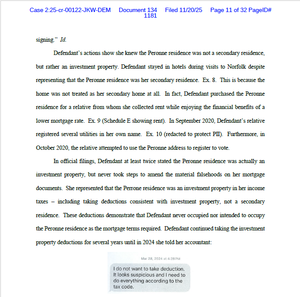 La prueba 4 en el documento de Halligan es la Declaración Jurada de Ocupación de Letitia James, donde juró bajo juramento que usaría la propiedad de Norfolk, Virginia, que compró como segunda residencia.
