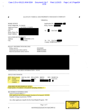 En otra solicitud de seguro, James afirmó que la casa de Norfolk estaba ocupada por un solo adulto, sin hijos.